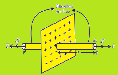 Consider a Uniformly charged Infinite sheet having area 'A' charged with a uniform charged density σ in a dielectric medium ε. Consider a point P at a Distance 'r' where electric field intensity is to be found.Consider a gaussian surface in form of a cylinder having cross sectional Area 'A' and length 2r.By symmetry, the End cap is parallel to area vector and curved surface area is perpendicular to Electric Field due to sheet.Thus Electric Field is 0 at curved surface.